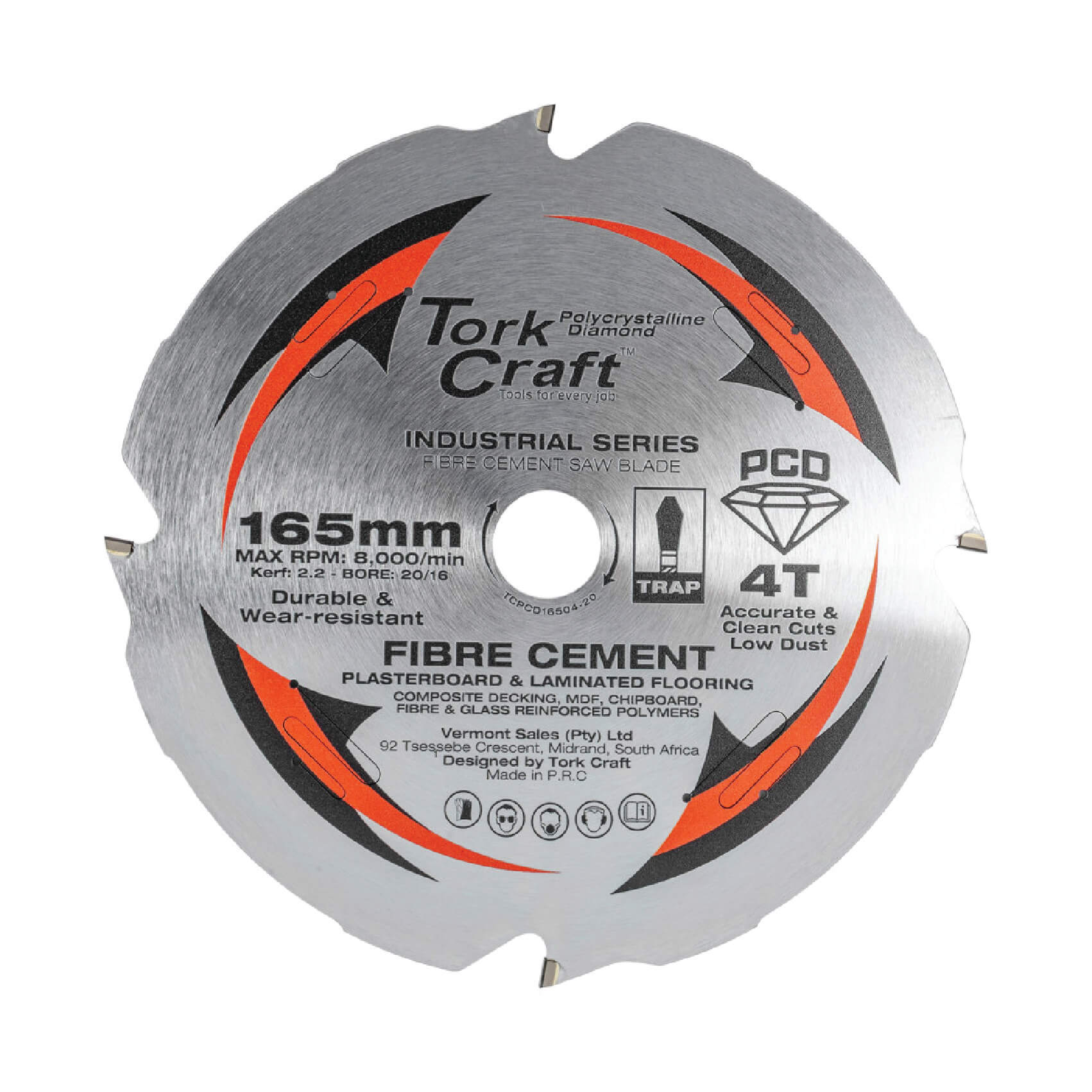 BLADE C/SAW PCD 165 X 4T 20/16 FIBRE CEMENT (TKT)